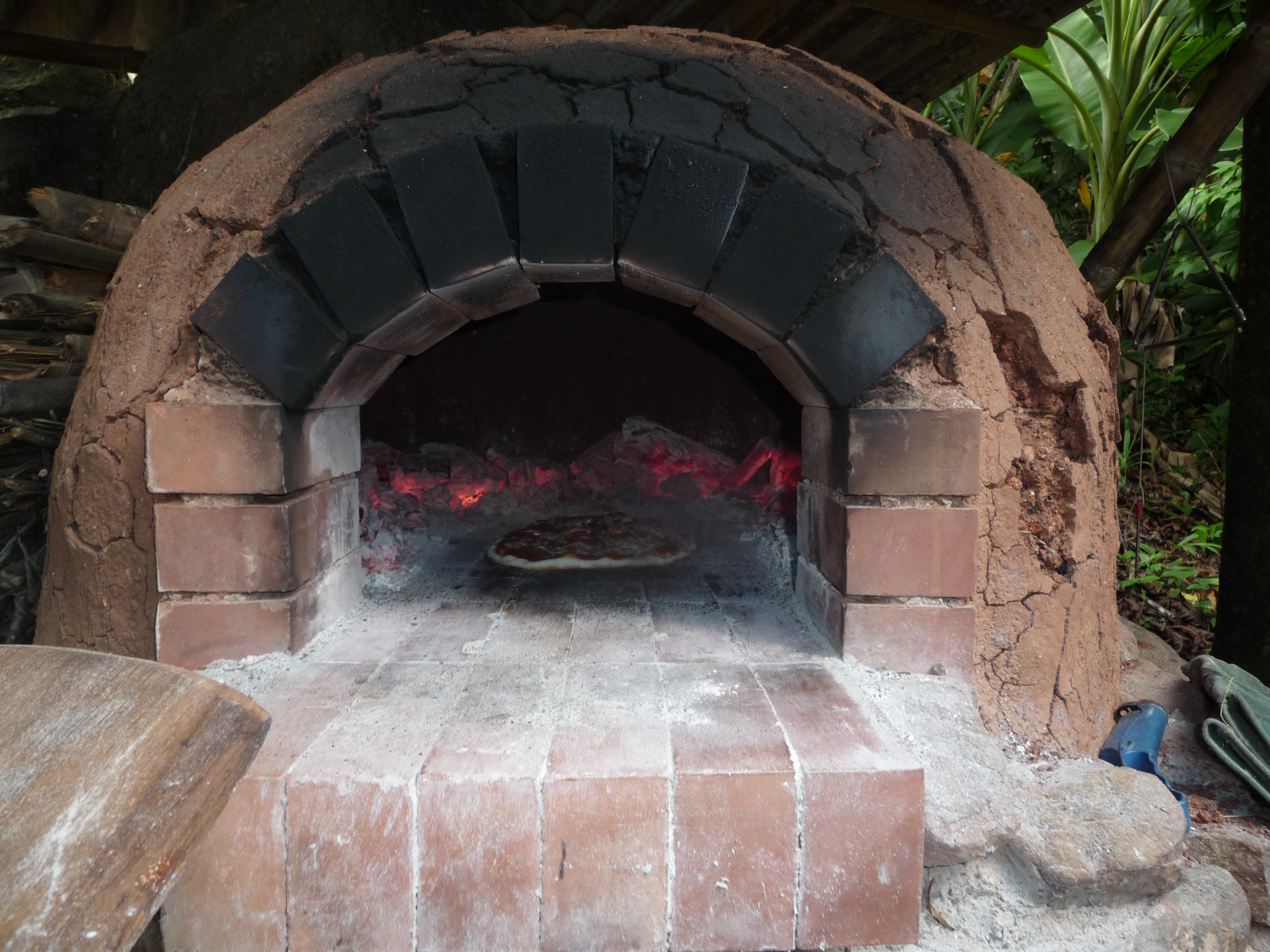for photos with their first (very professional) attempts at jungle pizza. A little break to let lunch settle and then Heather and Austin took the party up the hill by way of the stream bed through the