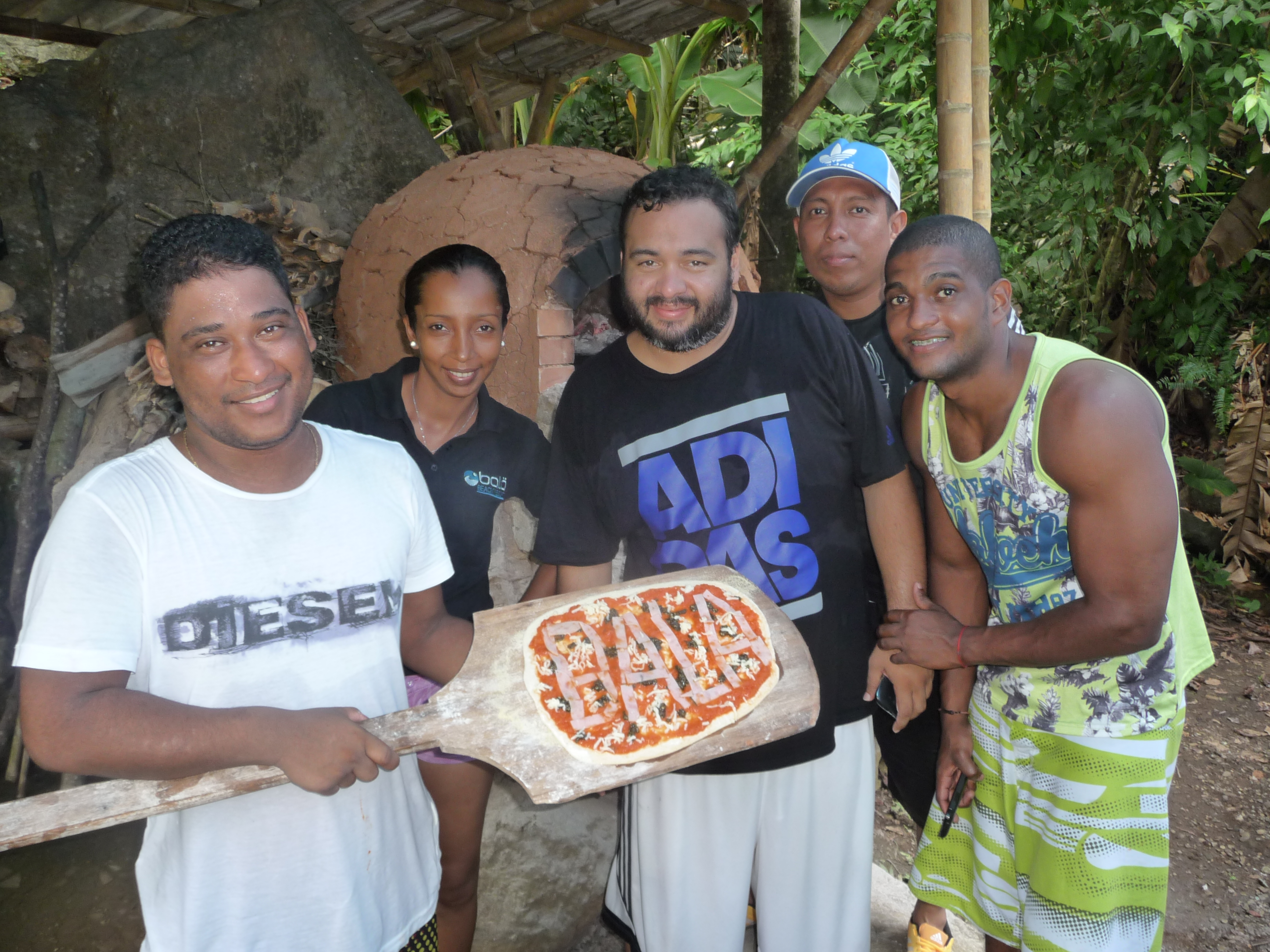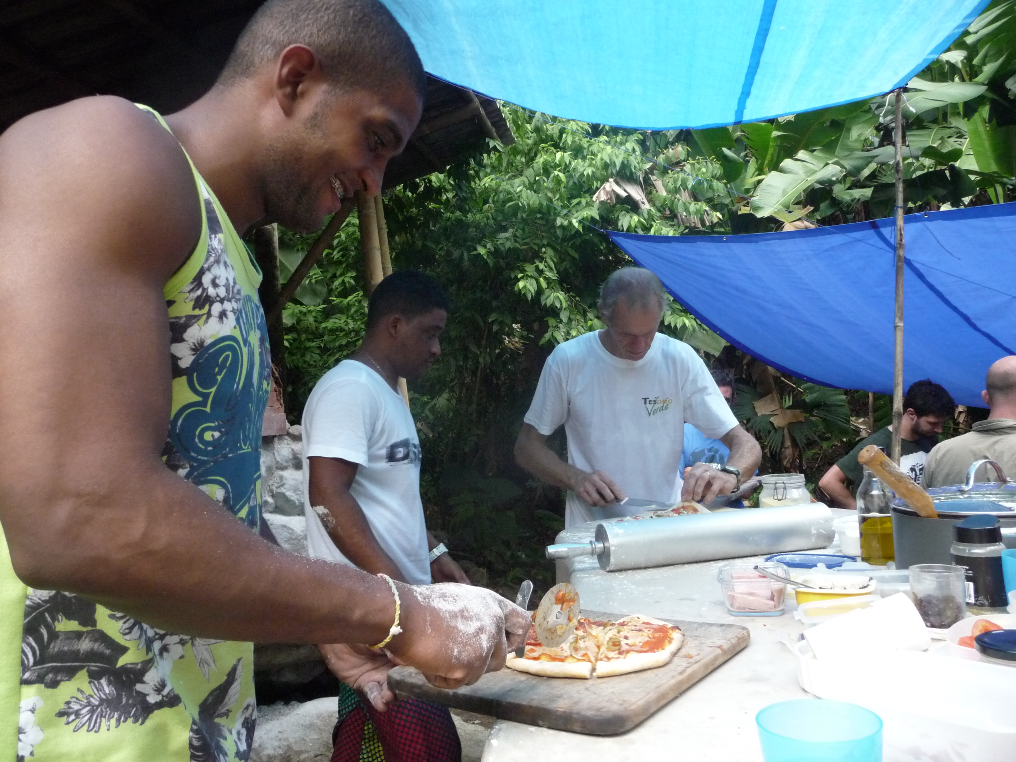pizza for the hungry trippers. We quickly lost count of the pizzas we made but all were happily consumed. Two of the resort chefs took great delight in showing off their culinary skills and posed