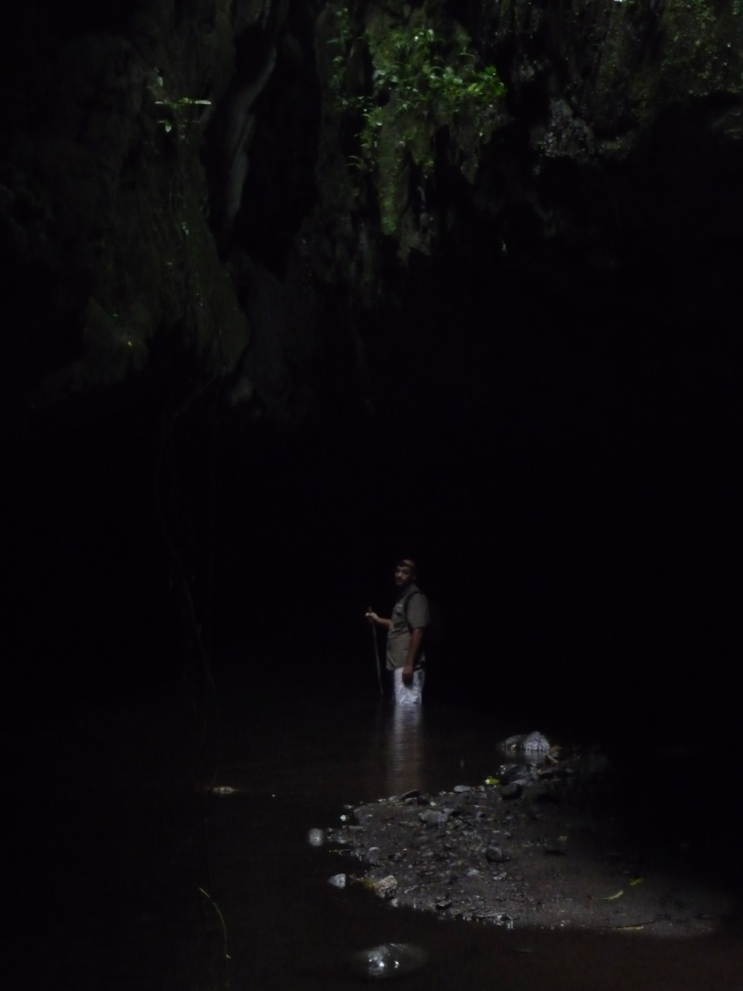 As we penetrated further the light faded until we were wading sometimes waist deep through the cavern with the only light coming from our torches.