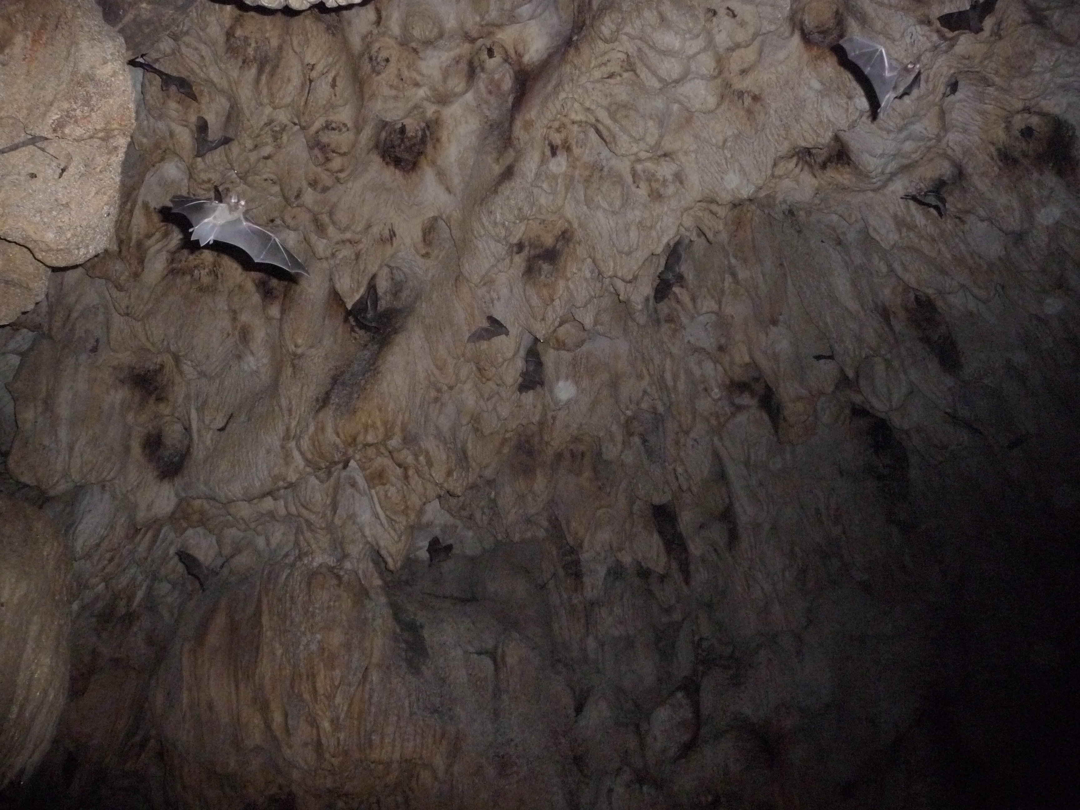In the few dry patches bats roost and whether because of the time (evening was approaching) or our noisy progress the air was filled with the flapping presence of little leather wings. The river winds upstream and at each curve the depth of the water varies so that it’s possible to find a route that keeps that the bottom within reach. That changed when we came to a slightly narrower straight section where the sandy bottom drops away dramatically and there is no option but to swim for it! Thankfully we only had to swim for a few minutes when the bottom rose to meet our feet and up ahead there was a suggestion of light.