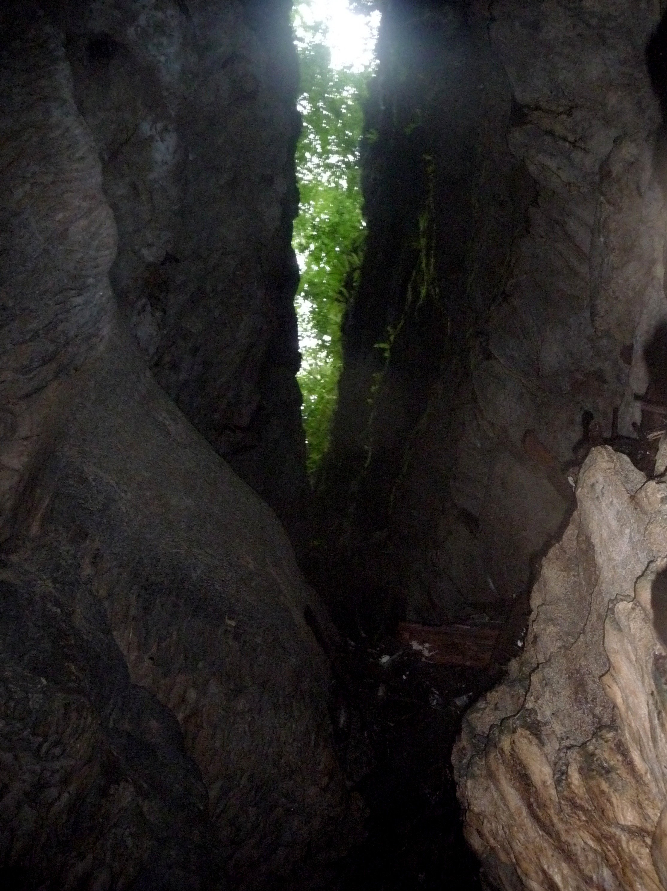 Torch in hand Austin wriggled his way forward into the chamber beyond and was able to walk around. Less brave than the intrepid Mr A, Amy and I took turns to squeeze into the narrow passage where we could see him searching for further openings. Nothing obvious presented itself so he returned to the outside world and we rejoined Heather who had been exploring further still up the river bed.
