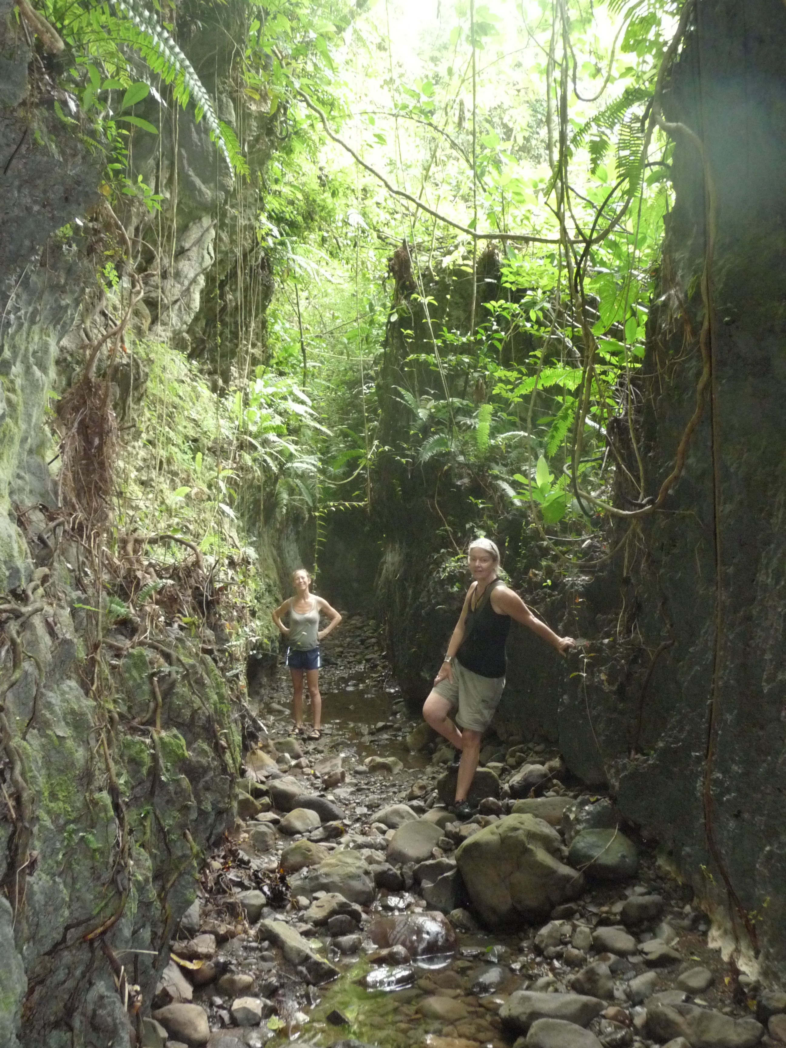 After a remarkably bug free night and a breakfast cooked in the little kitchen that is part of the cabin we set off in search of some different caves that Austin had talked to our hosts about. He was looking in particular for dry cave systems where the build up of bat guano could support a population of insects, specifically, hopefully, COCKROACHES! We arrived at the site with muddy feet. The path along the shore is short but pretty poorly drained and consumes shoes with ease. The river that had carved the canyon we were looking for was not running when we arrived but must have been quite a torrent at least part of the time in the past judging by the depth of the gorge. At least 30 meters deep. We followed a two inch pvc pipe uphill for a while until it disappeared into the dry river bed where we could nonetheless hear the sound of running water.
