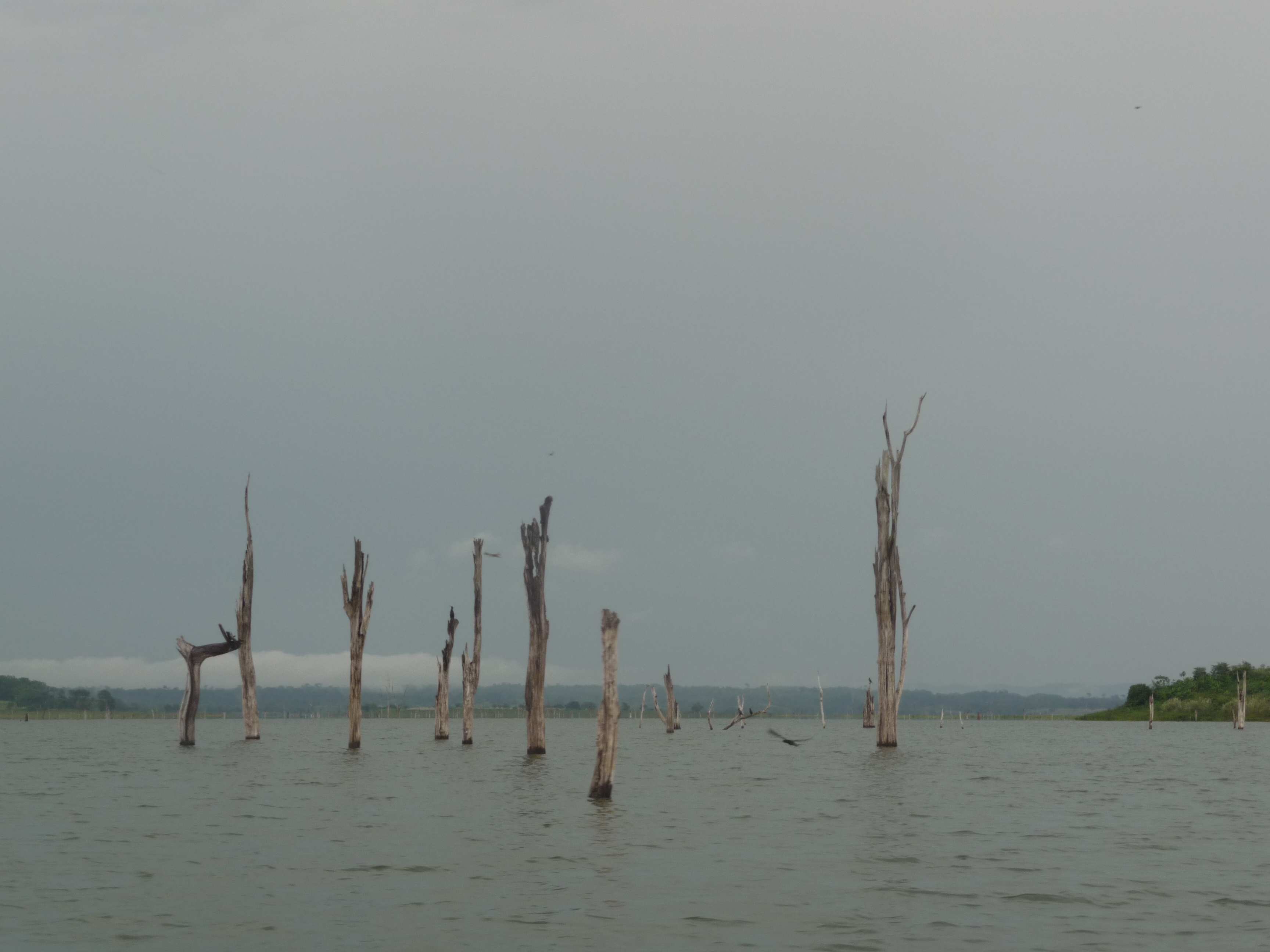 We arrived early afternoon at the lake and although we had not made a prior booking for a boat to take us to the south shore where the caves are it didn’t take Austin long to befriend one of the lancha drivers who helped us strike a deal with a colleague for the 40 min trip. The ride reminded me of trips on Lake Gatun since both lakes are man made and have similar features. Small uninhabited islands with only water birds in residence, the lake surface broken by a multitude of eerily decaying trees, drowned when the lake was formed in 1976 for a hydro-electric project.