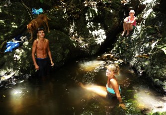Deep in the jungle (actually not far at all) you will find a little natural pool that’s a perfect place to cool down on a hot day. It’s there for you whenever you like and as the name suggests skinny dipping, although not obligatory, will not upset the monkeys! Keep your eyes open as you climb up to the pool it’s a great place to spot the resident green and black dart frogs.